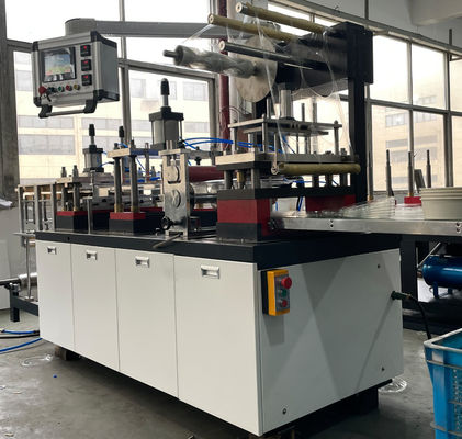 Mesin Pembuat Tutup Cangkir Kertas Sepenuhnya Otomatis Tutup Plastik Mesin Thermoforming